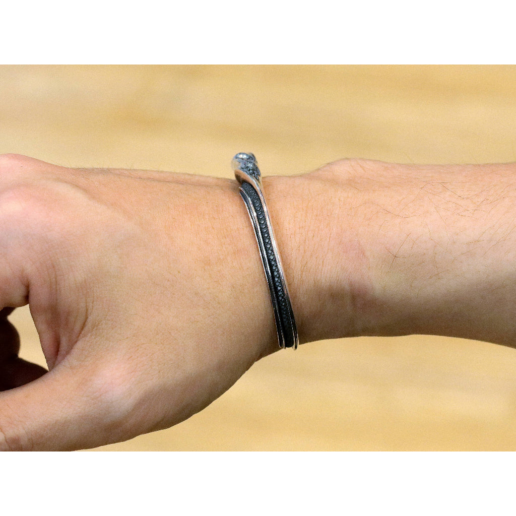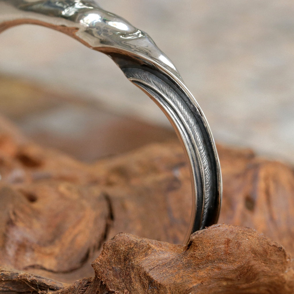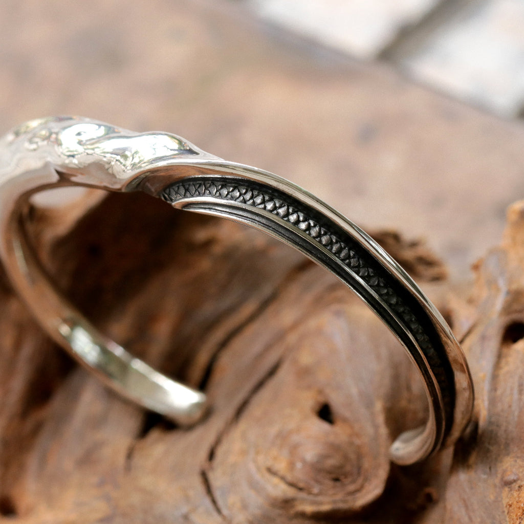 【Silver Monsters】日本雕畫雙絕Dual Flow 細緻雕工 龍鱗鳳羽雙極 手工純銀手環