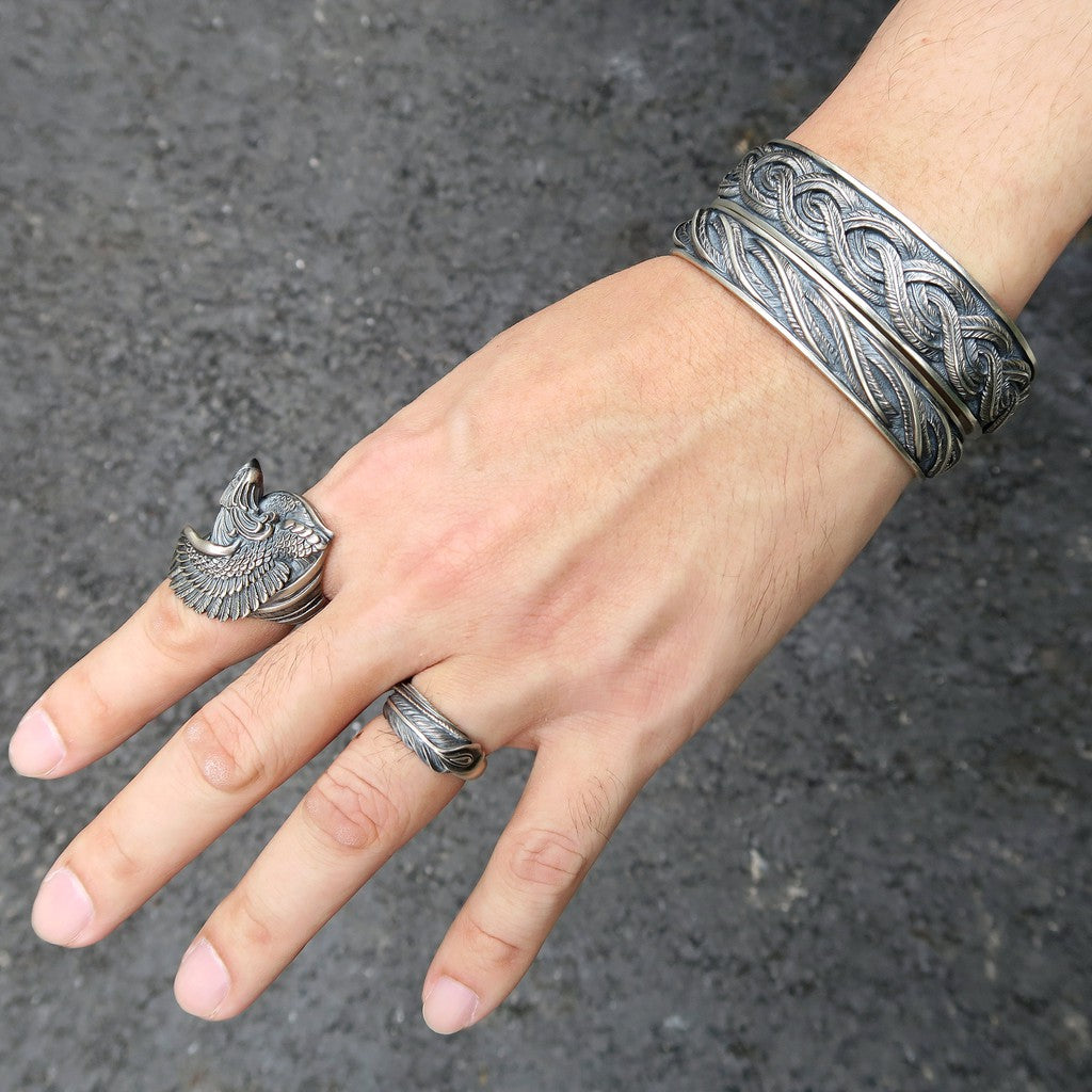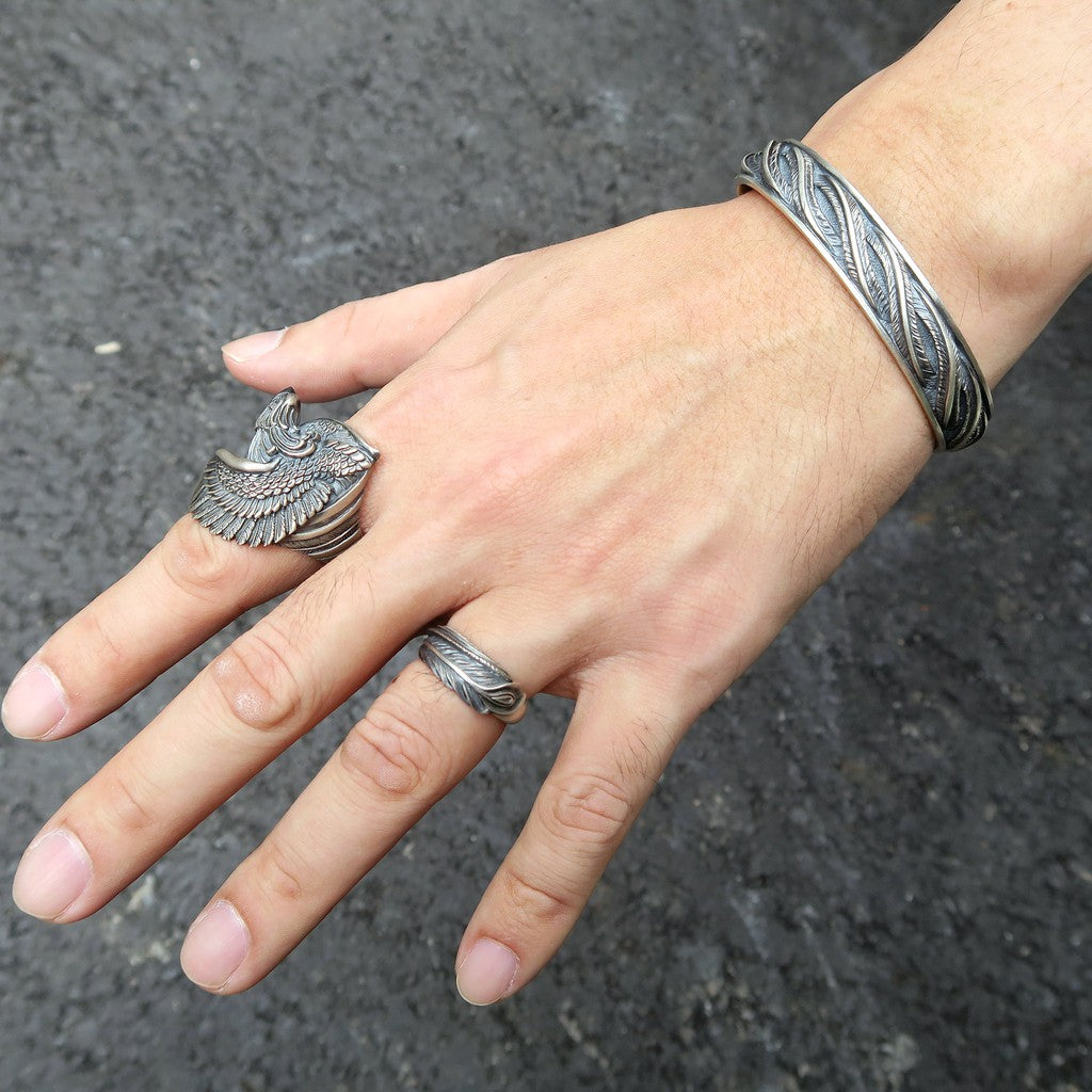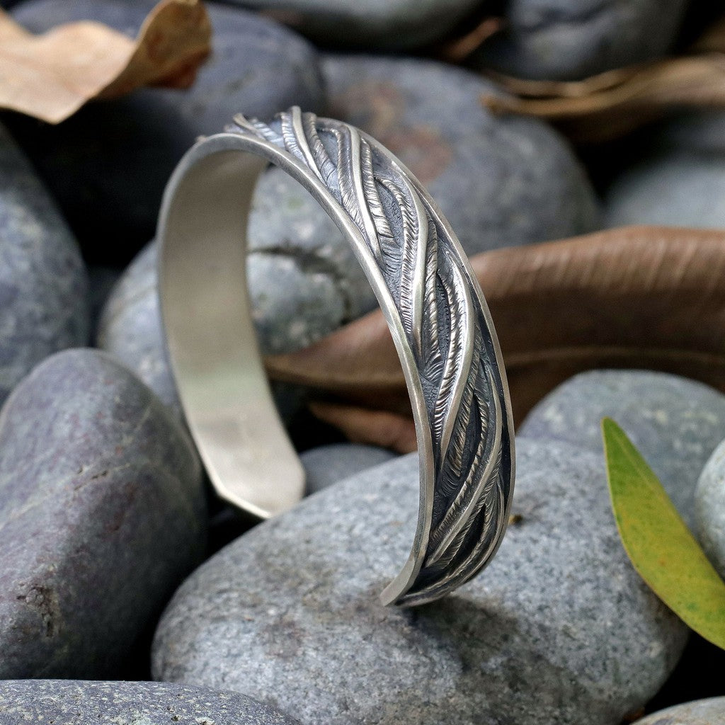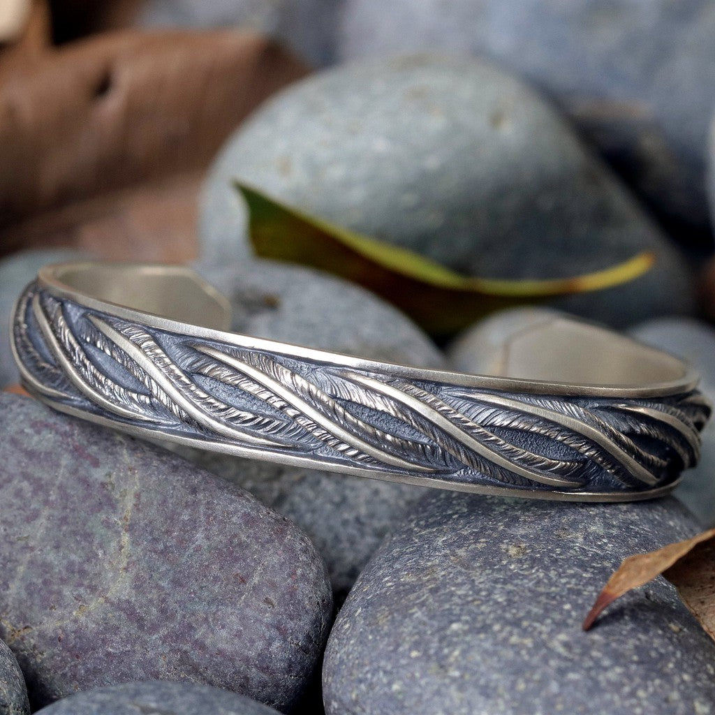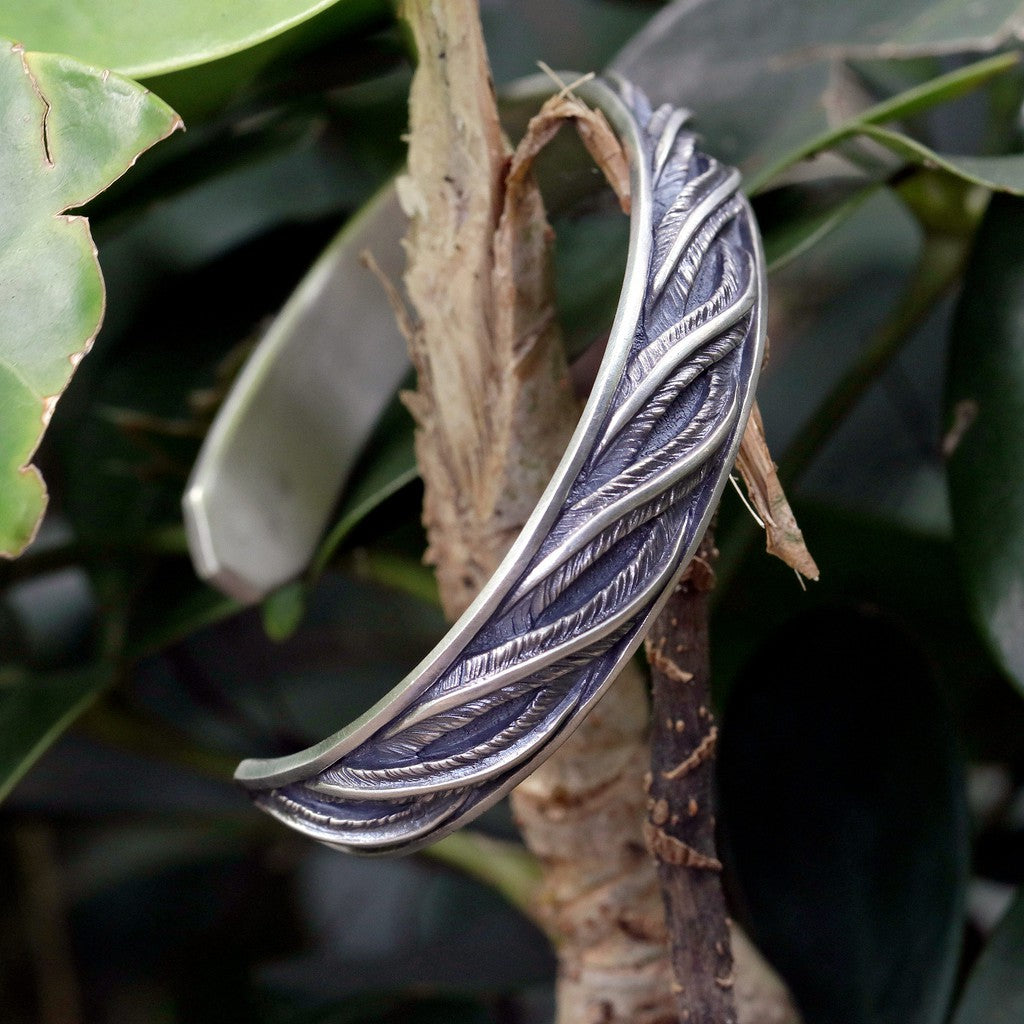 【Silver Monsters】日本雕畫雙絕 Dual Flow 2020手作原創新品 "流紋羽毛" 純銀手環 M