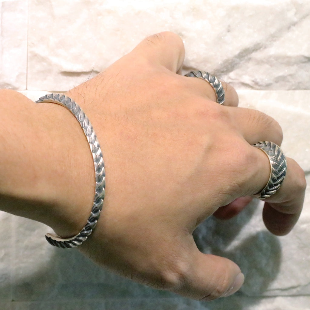 【Silver Monsters】日本雕畫雙絕 Dual Flow 原創手作 細版GUREN "紅蓮" 純銀手環