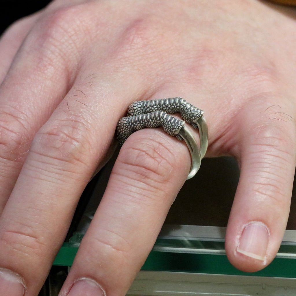 【Silver Monsters】日本雕畫雙絕 Dual Flow 手工銀飾 原創設計 細膩雕工 龍爪純銀戒指 S