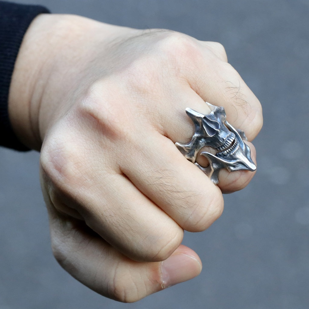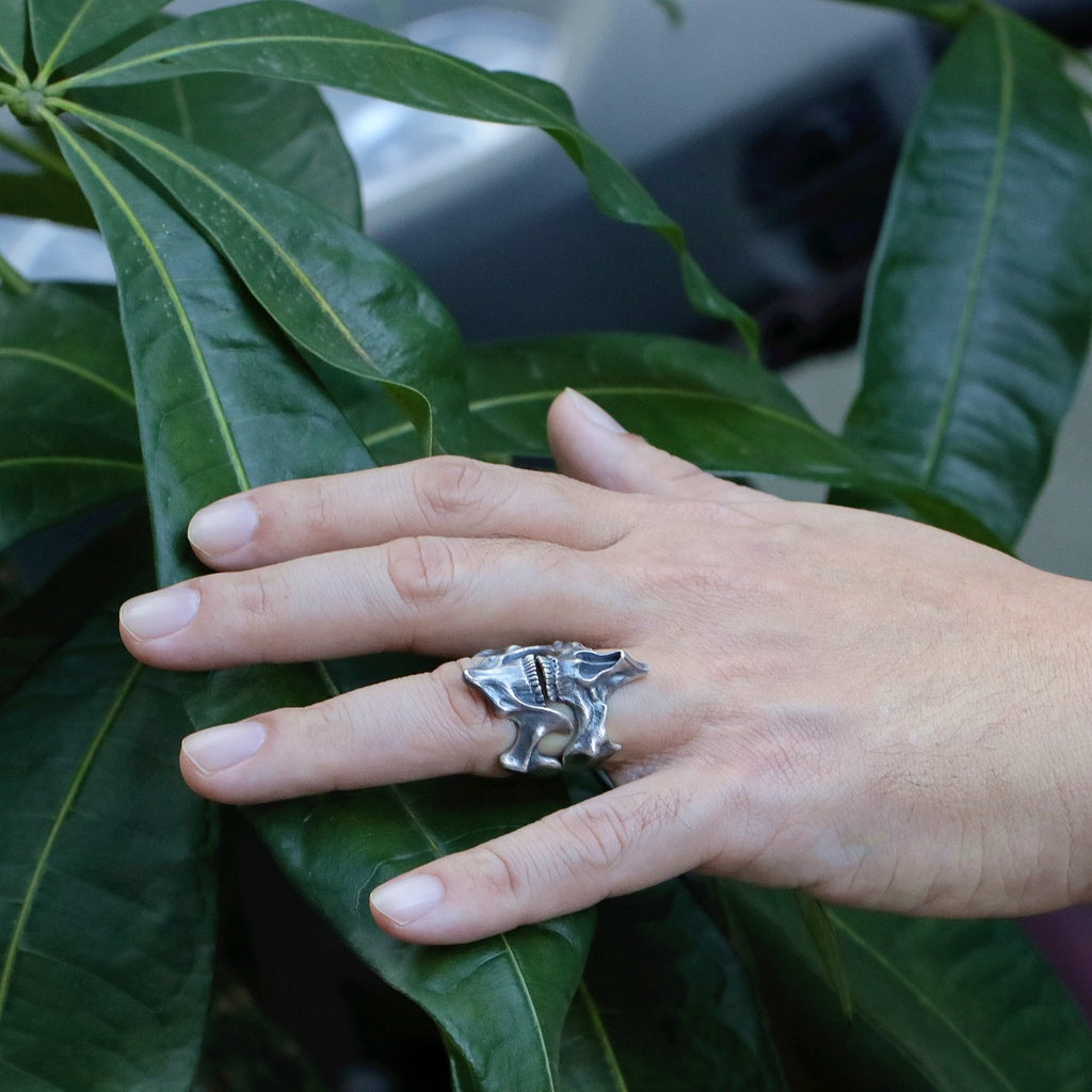 【Silver Monsters】日本雕畫雙絕 Dual Flow 原創設計 下腭骨 渦流骷髏 純銀戒指 指環