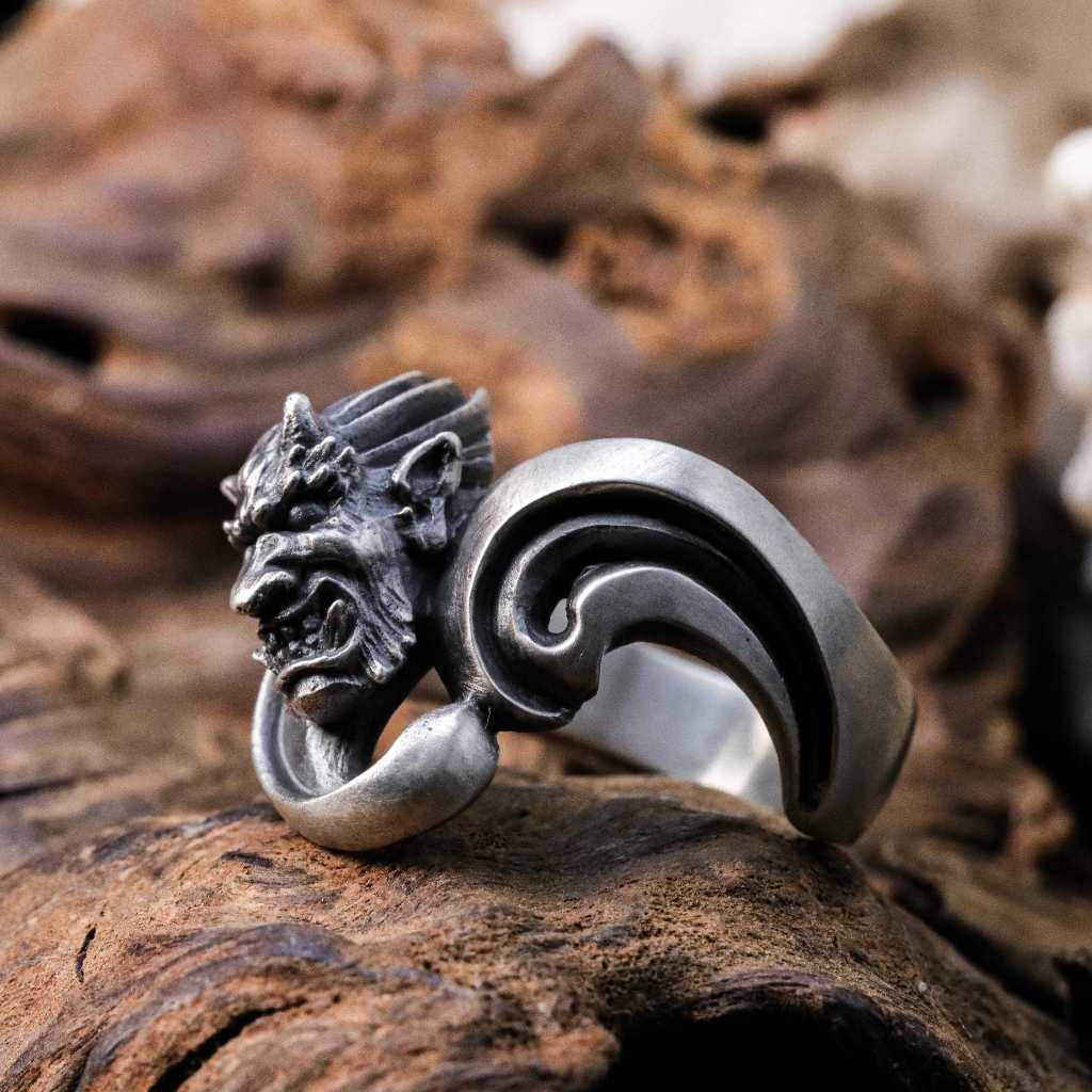 【Silver Monsters】日本雕畫雙絕 Dual Flow 原創精雕 雷神 純銀戒指