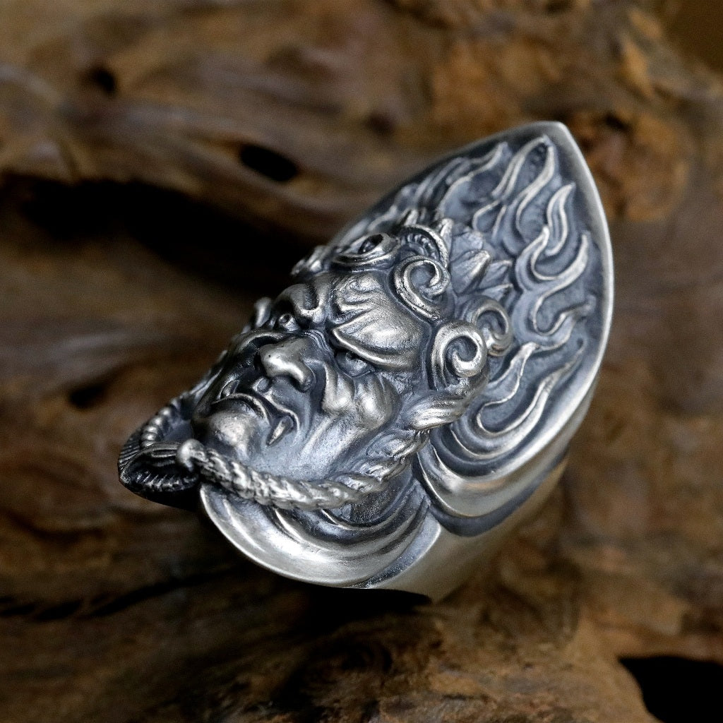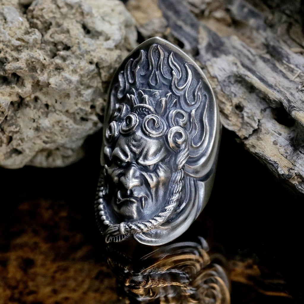 【Silver Monsters】日本雕畫雙絕 Dual Flow 原創手作 不動明王 純銀戒指