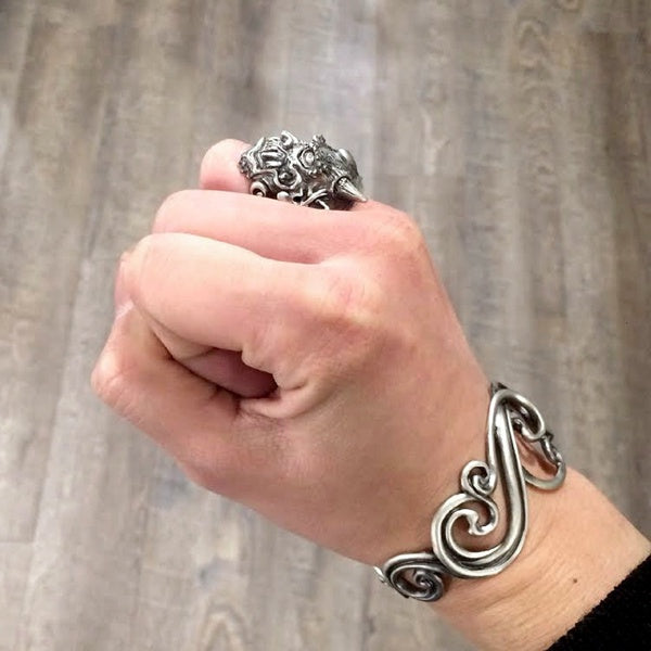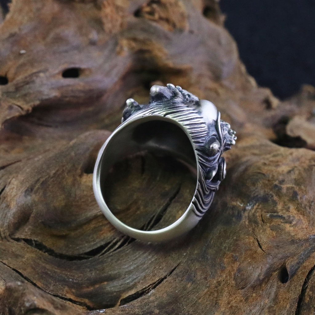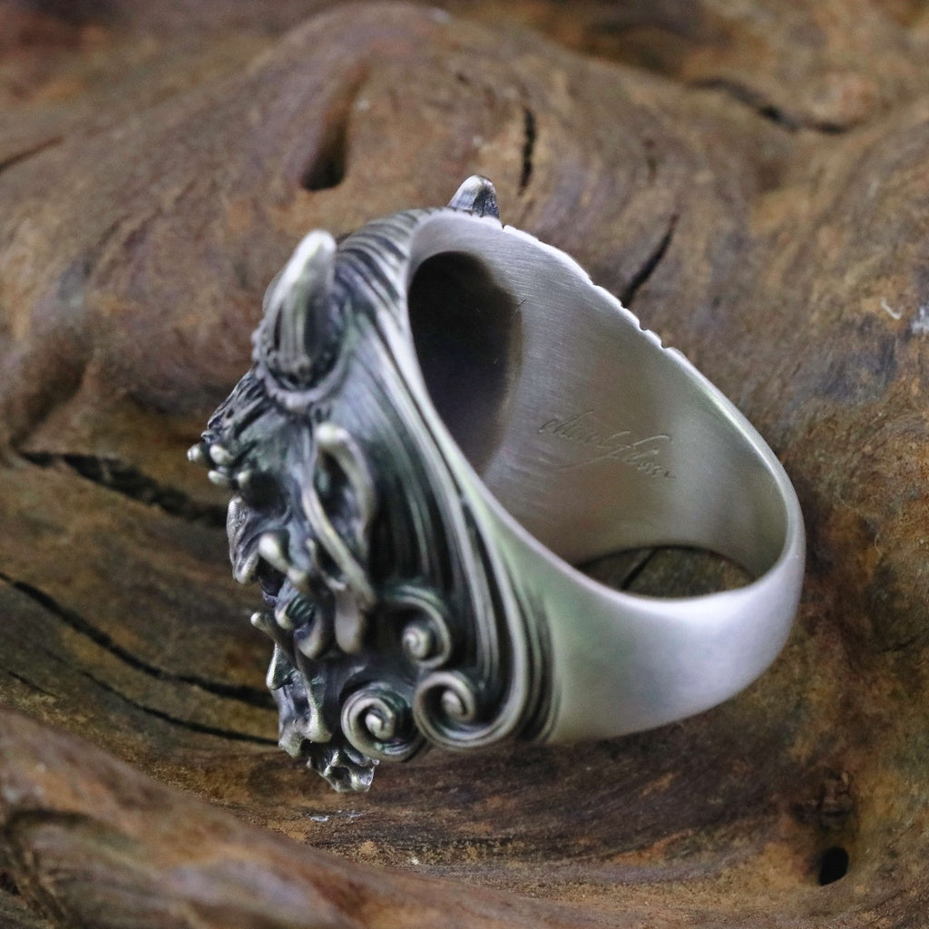 【Silver Monsters】日本雕畫雙絕 Dual Flow 手工雕刻 原創設計 怒神 純銀戒指