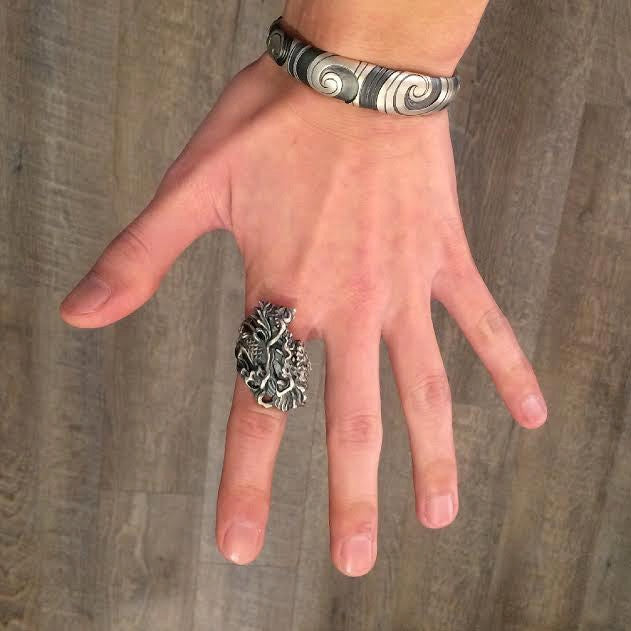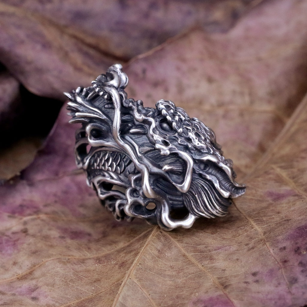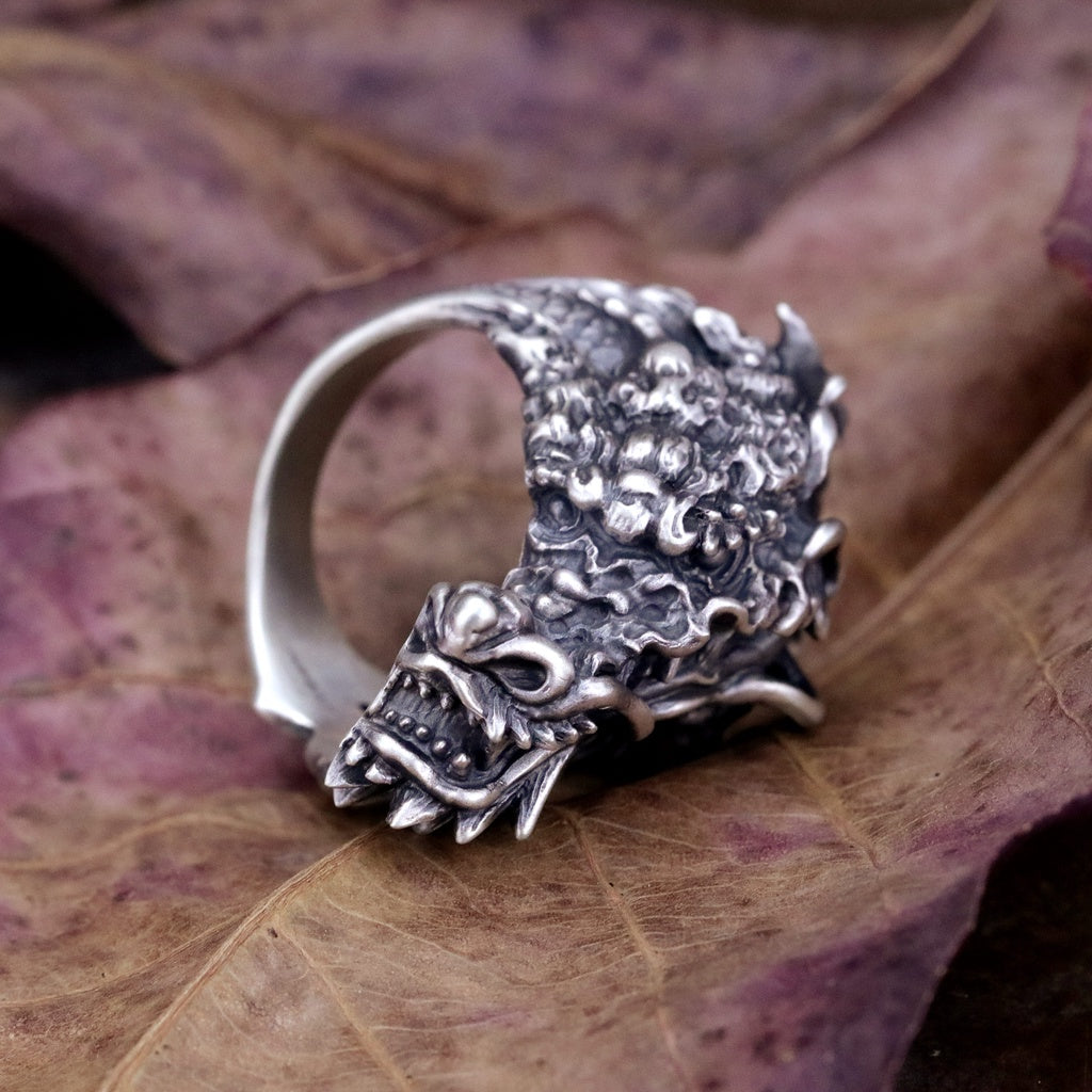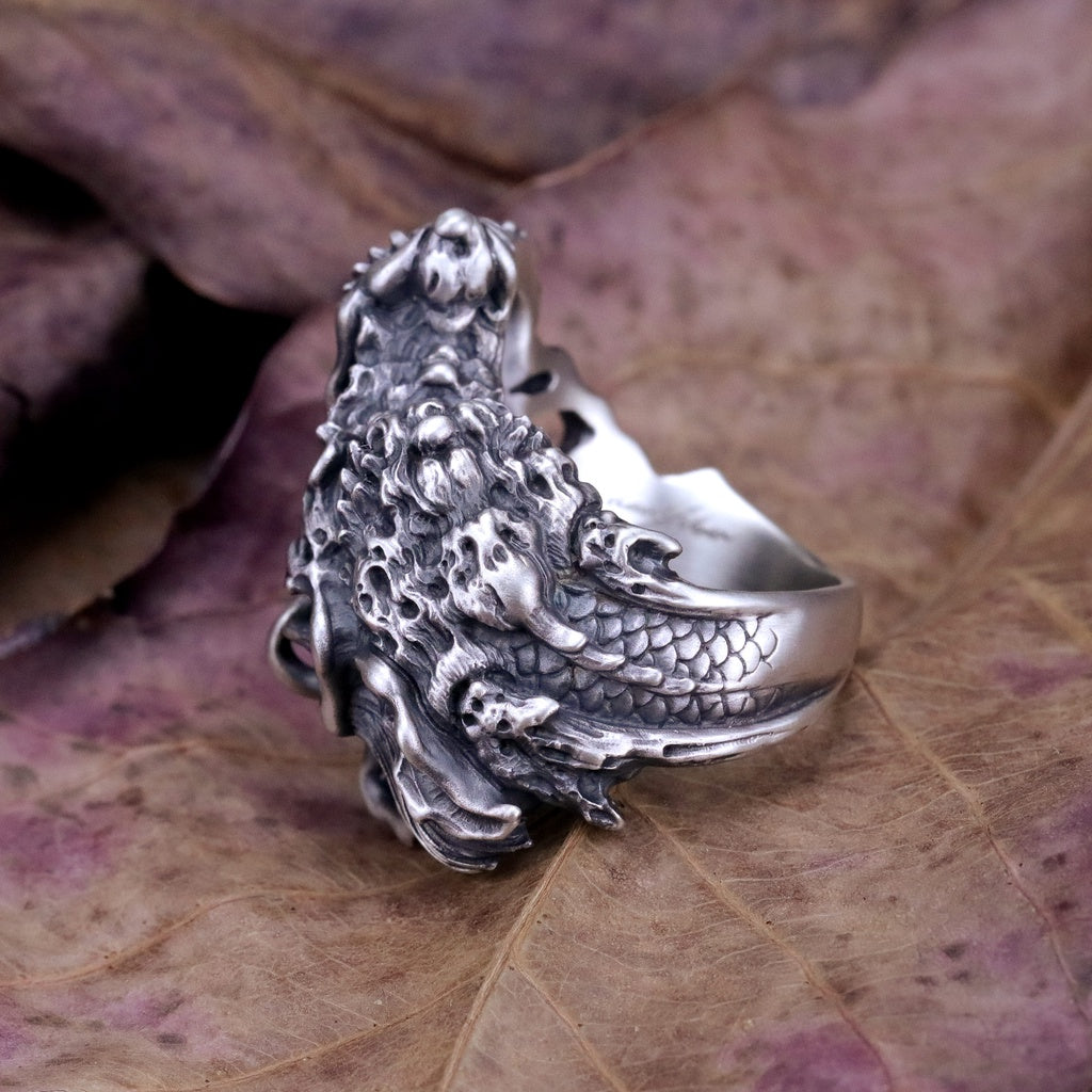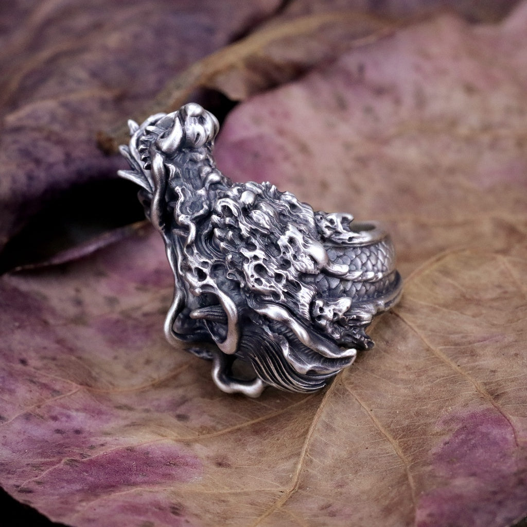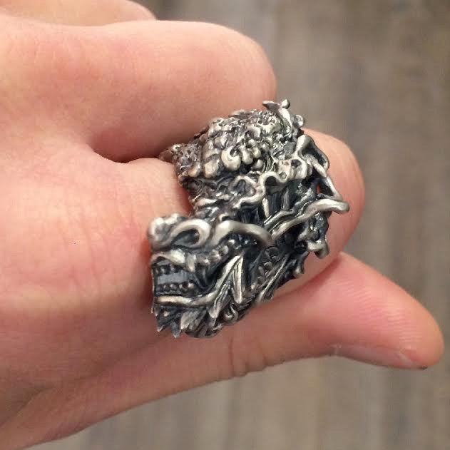 【Silver Monsters】日本雕畫雙絕 Dual Flow 細緻雕工 昂首闊口 "昇龍" 純銀戒指