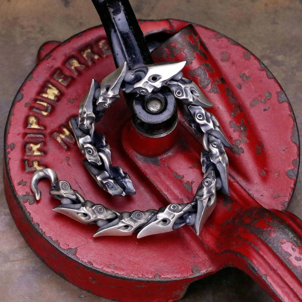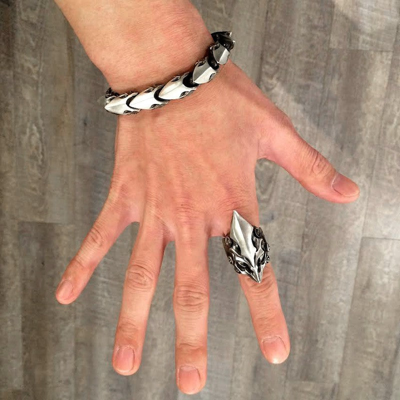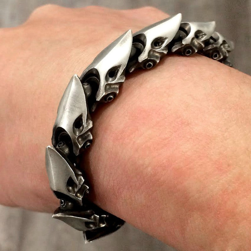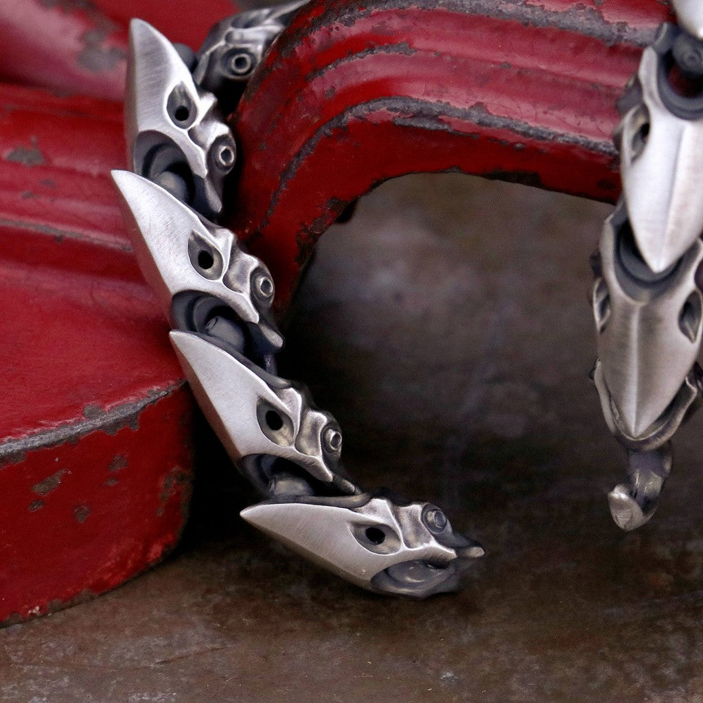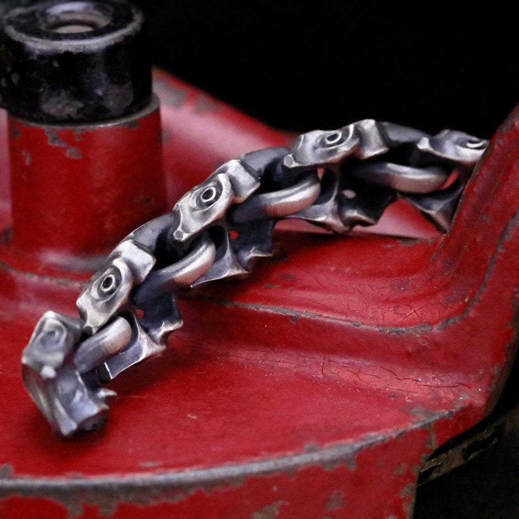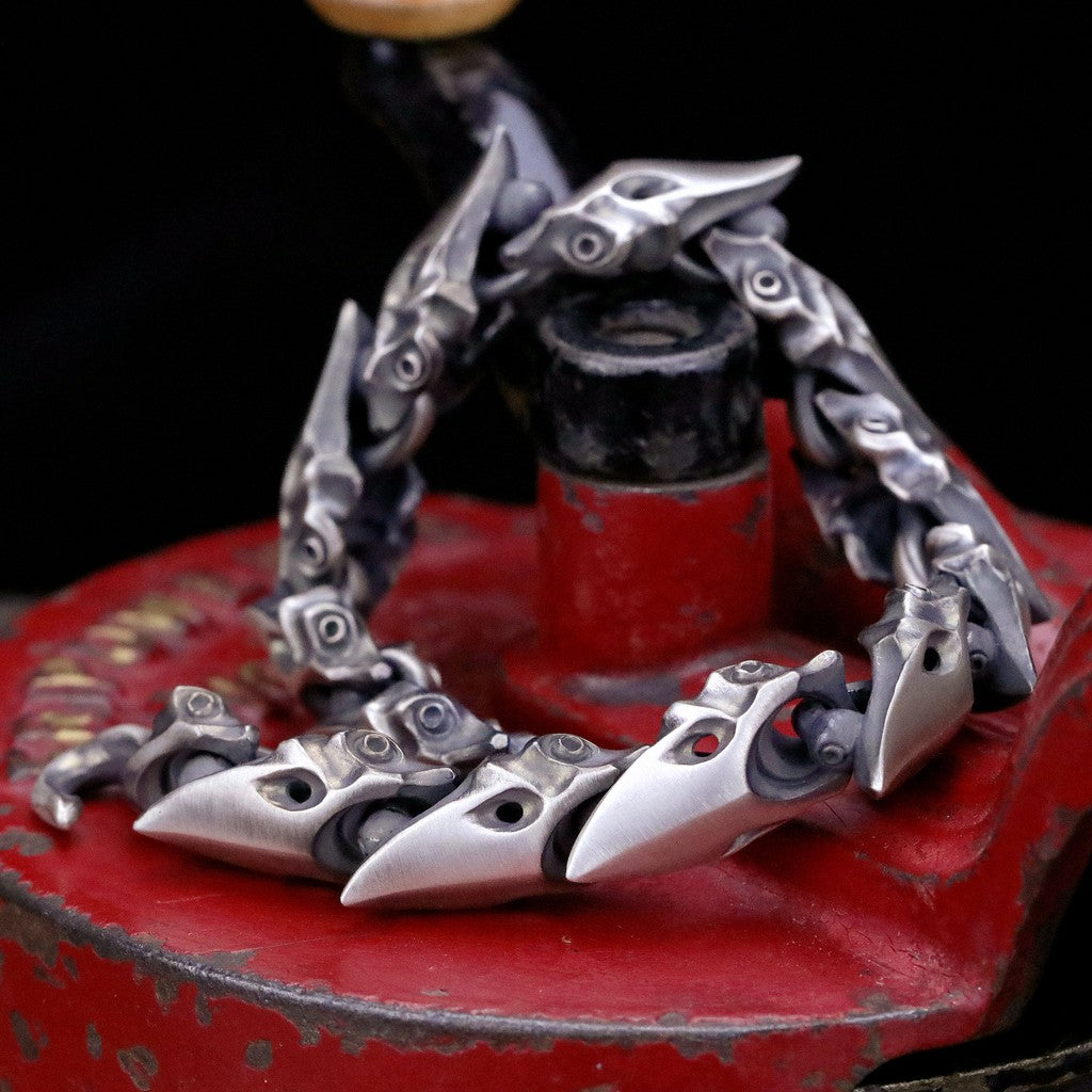 【Silver Monsters】日本前衛宗師 Glam Scale 機甲王 招牌髮絲紋霧化 機甲手鍊