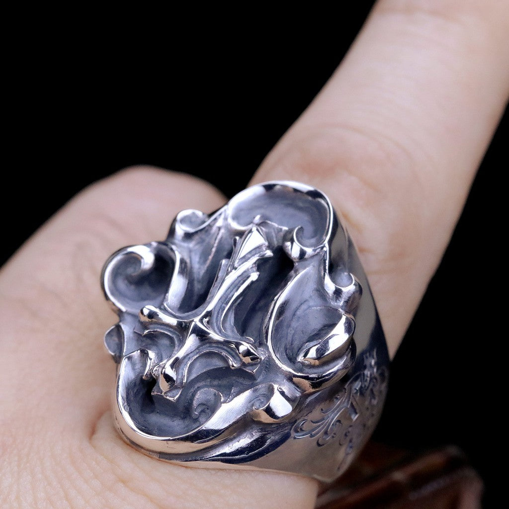 【Silver Monsters】日本一級神牌Loud Style Design 緋紅の祈禱 雕花十字純銀戒指