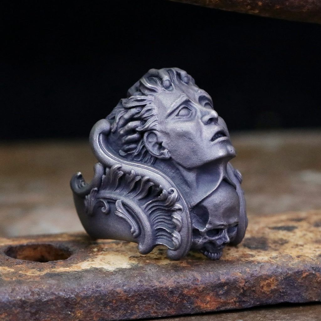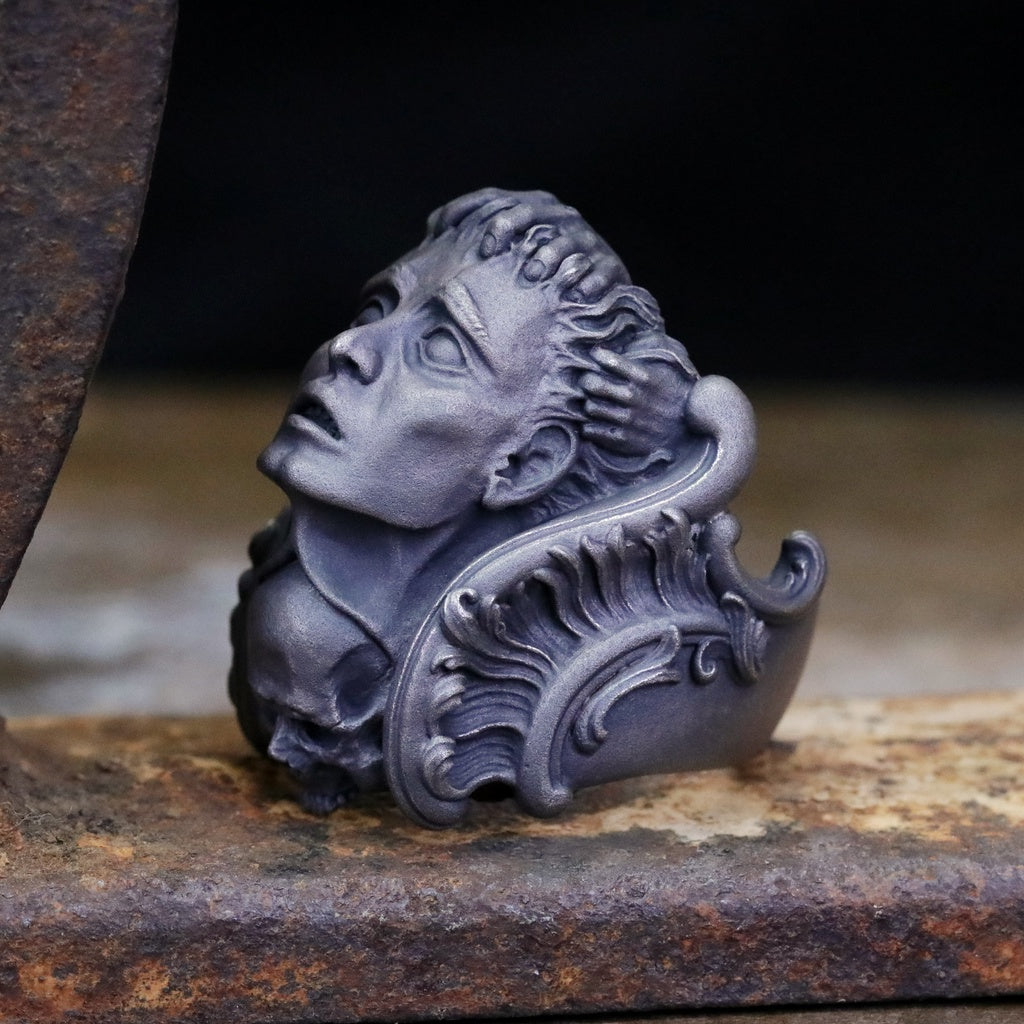 【Silver Monsters】日本暗系古典狂潮 Superbia 死之華 原創手做 舊化噴砂 純銀戒指